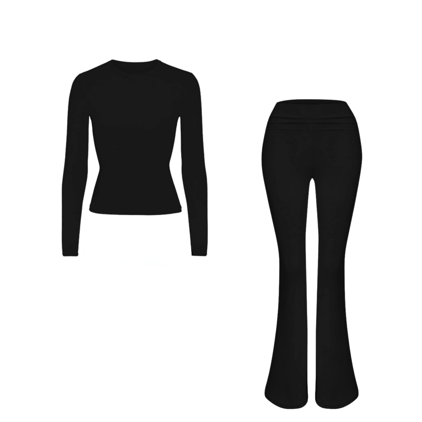 Wrap yourself in effortless luxury with our Micro Ribbed Long Sleeve Set. Designed with a flattering slim fit and crafted from ultra-soft, stretch micro-ribbed fabric. Features include a sleek crew neckline, contouring ribbed texture, and a mid rise waist flared bottoms.